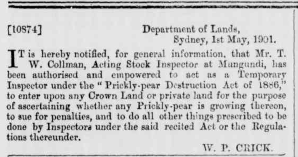 The article says that he was leaving ‘for the west’. But the town of Mungindi in the north is where we next find Tom Collman.