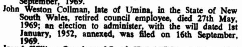 Around 1963 Jack and Cordelia moved from Sydney to Umina near Woy Woy. Jack died in Newtown in 1969.