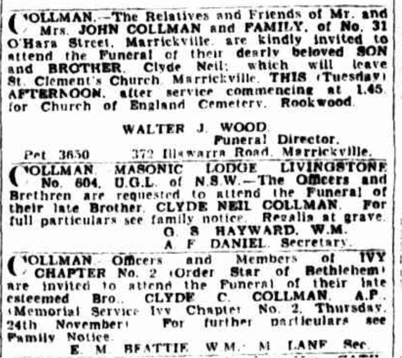 The next few years were a tumultuous time in the Collman household. Baby Edward John Collman was born in June 1913, was baptised the following month and died soon after aged only six weeks. Baby Clyde Neil Collman was born in July 1914.
