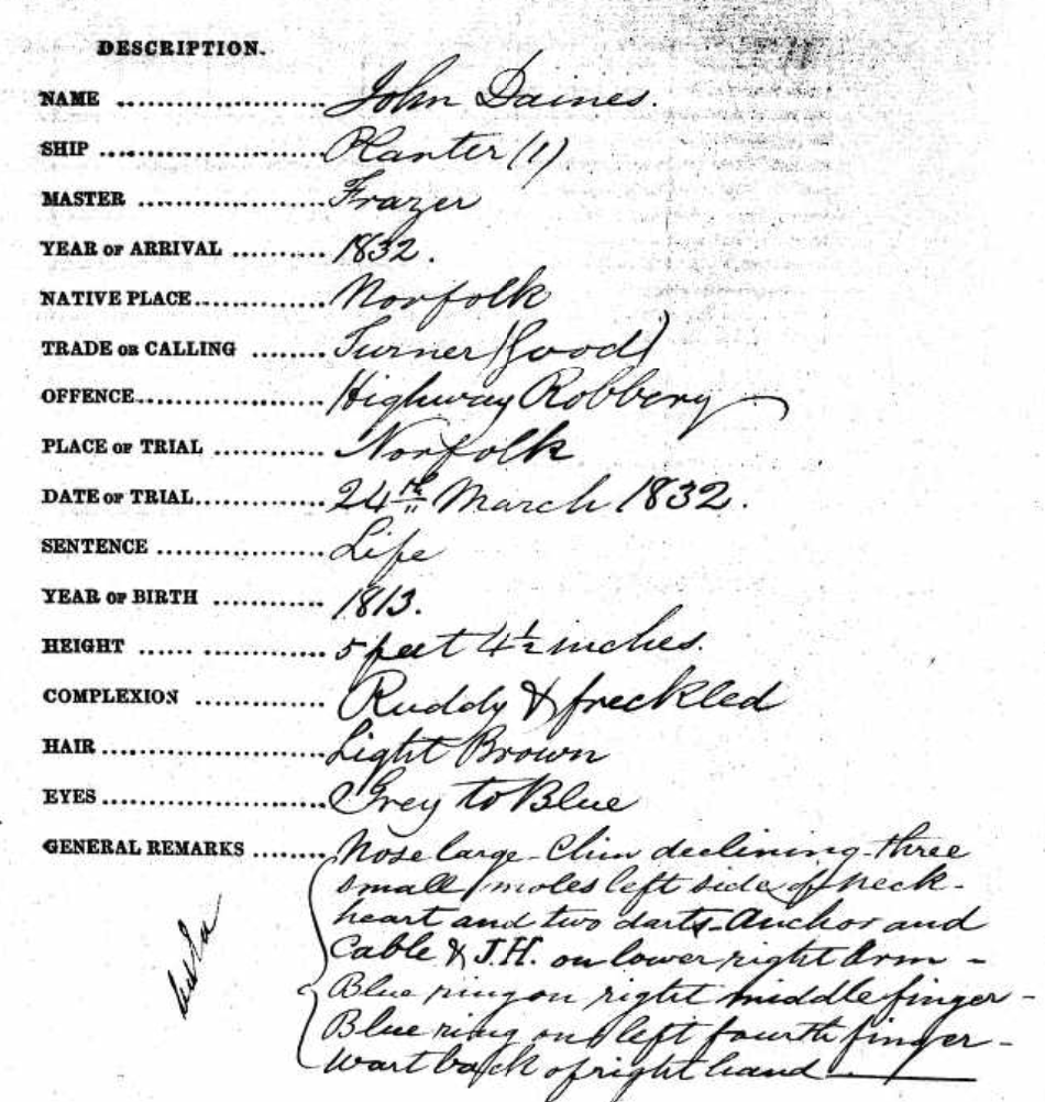 We will next find John Daines on the sunny shores of Moreton Bay in Queensland, suffering through – and I say suffering deliberately because legend tells us the Penal Settlement is a horrible place – suffering through a four-year colonial conviction.