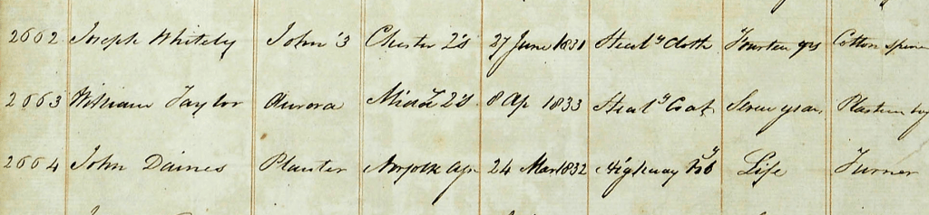 Soon after the arrival of the Planter into Sydney Cove in late 1832, John will first be assigned to John Wood, of Maitland NSW. In the first few days of the following year, he will be back in Sydney, assigned to James Underwood of Rushcutter’s Bay.